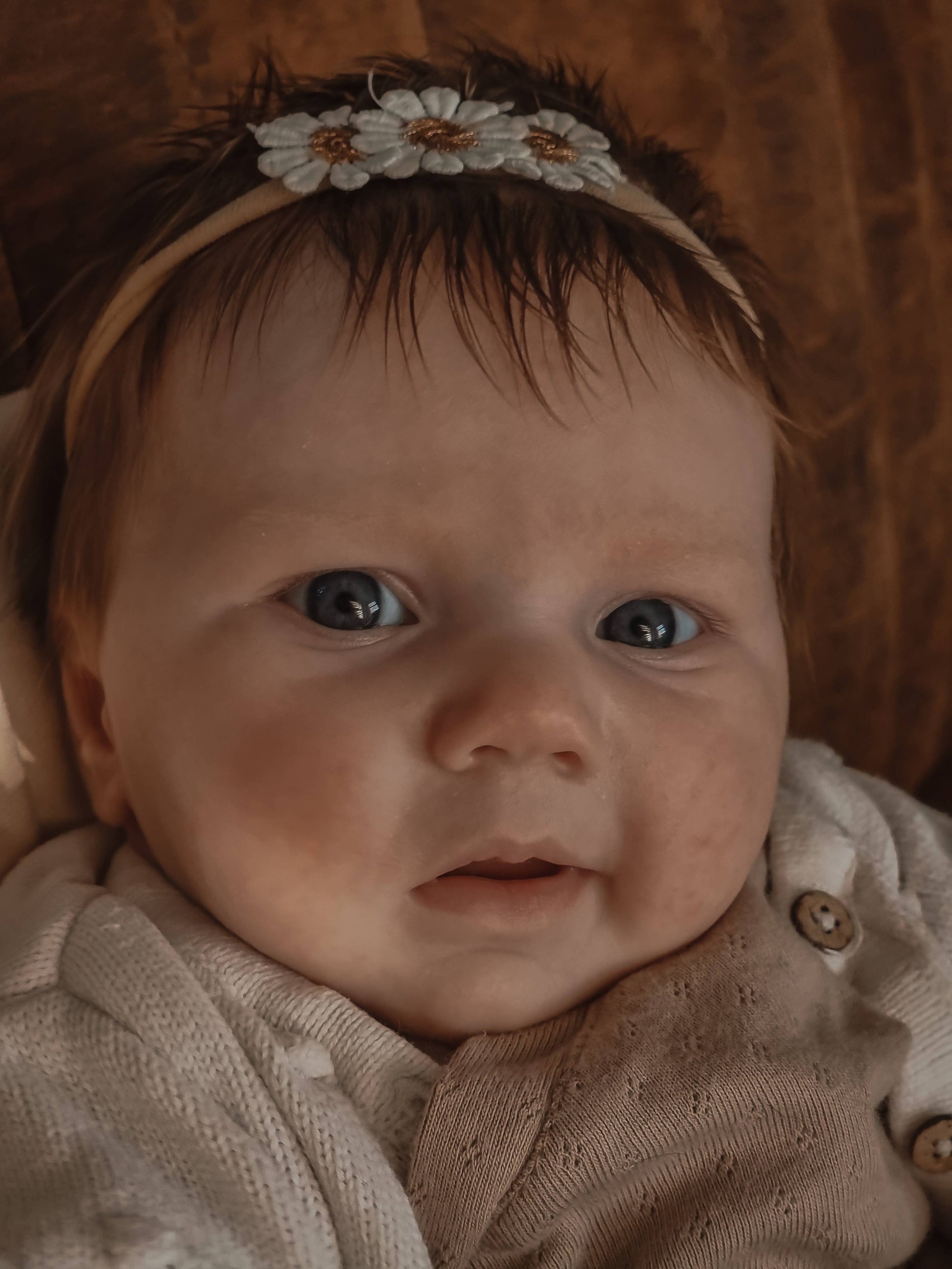 Het zijn 3 madeliefjes met brons in het midden, wat een subtiele glitter heeft.